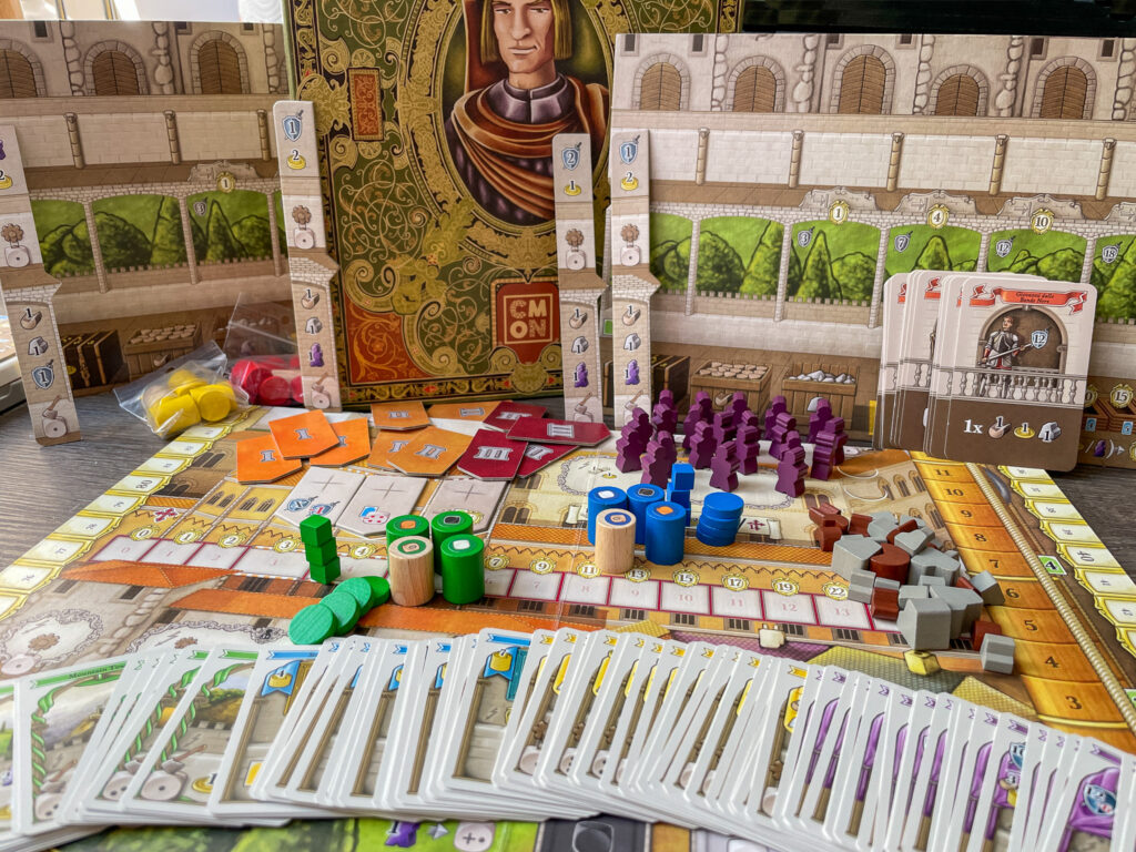 Soms heb je wel eens dat een spel (tijdelijk) slecht verkrijgbaar is en als gevolg daarvan (zeer) duur wordt. Het overkwam mij met Carabande, Las Vegas en met Lorenzo il Magnifico. Na dit spel in 2019 voor een flinke prijs bemachtigd te hebben, werd het een jaar later op Spiel op pallets ‘cadeau’ gedaan voor € 15,-. Is dit spel het in beide gevallen waard?